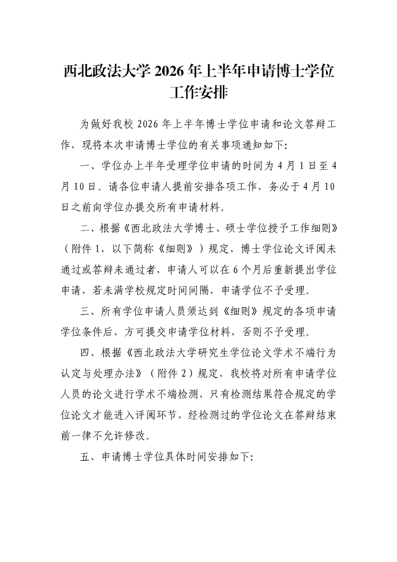 下一篇:西北政法大学2026年上半年申请硕士学位工作安排